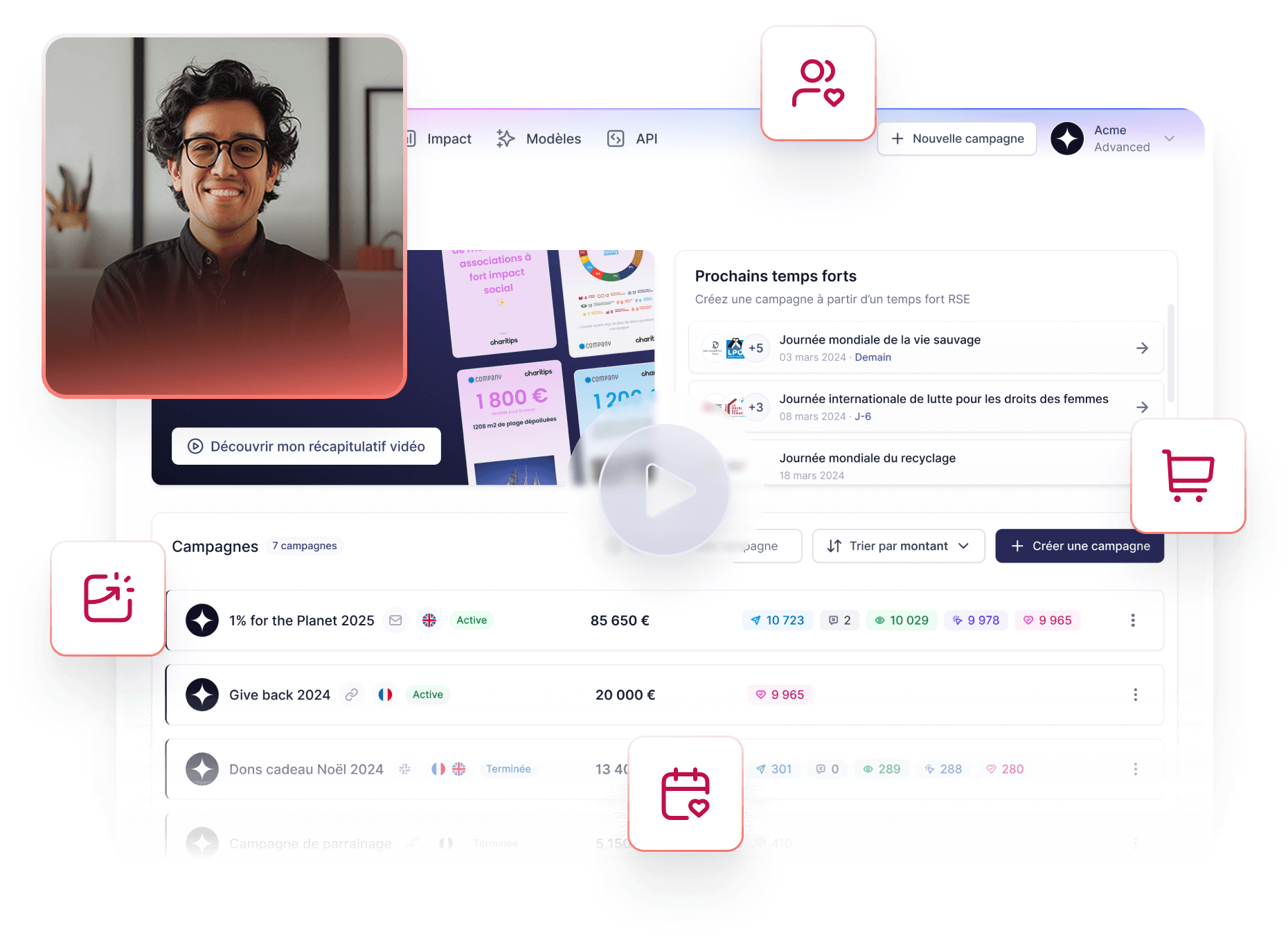 Répondez à vos besoins (acquisition, engagement, fidélisation…) avec des campagnes solidaires plus impactantes que vos approches traditionnelles. Transformez vos actions en leviers stratégiques pour booster vos performances globales.