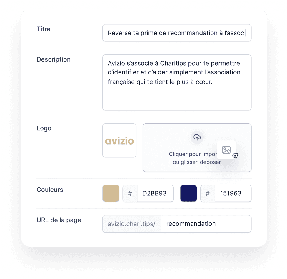 Couleurs, Logo, texte, URL, associations…Charitips s’adapte à vous, pas l’inverse.